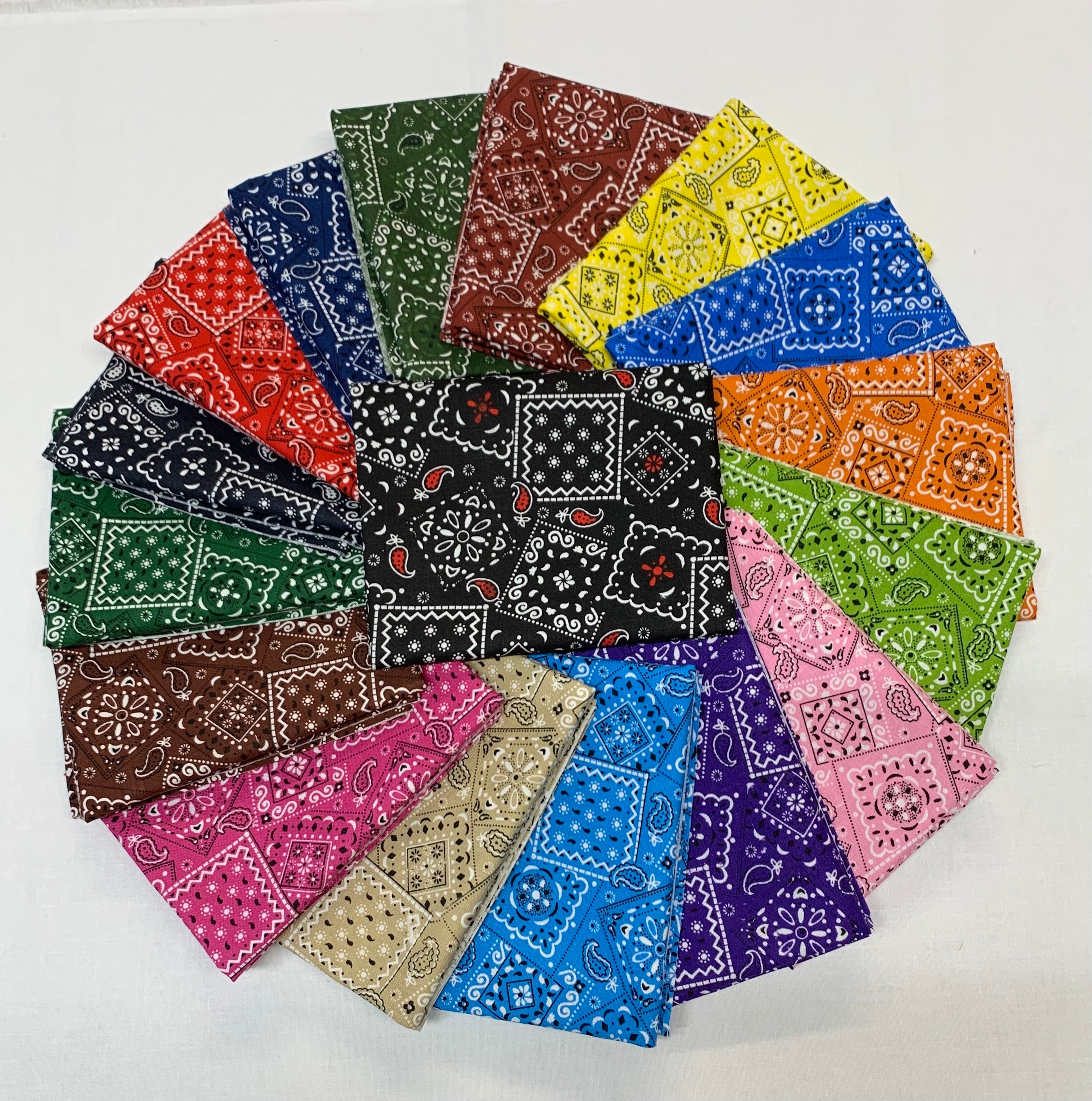 17 fat quarters of the Classic Bandana print! 17 colors-. 100% cotton. 18 x 21/22. 4 yards total!