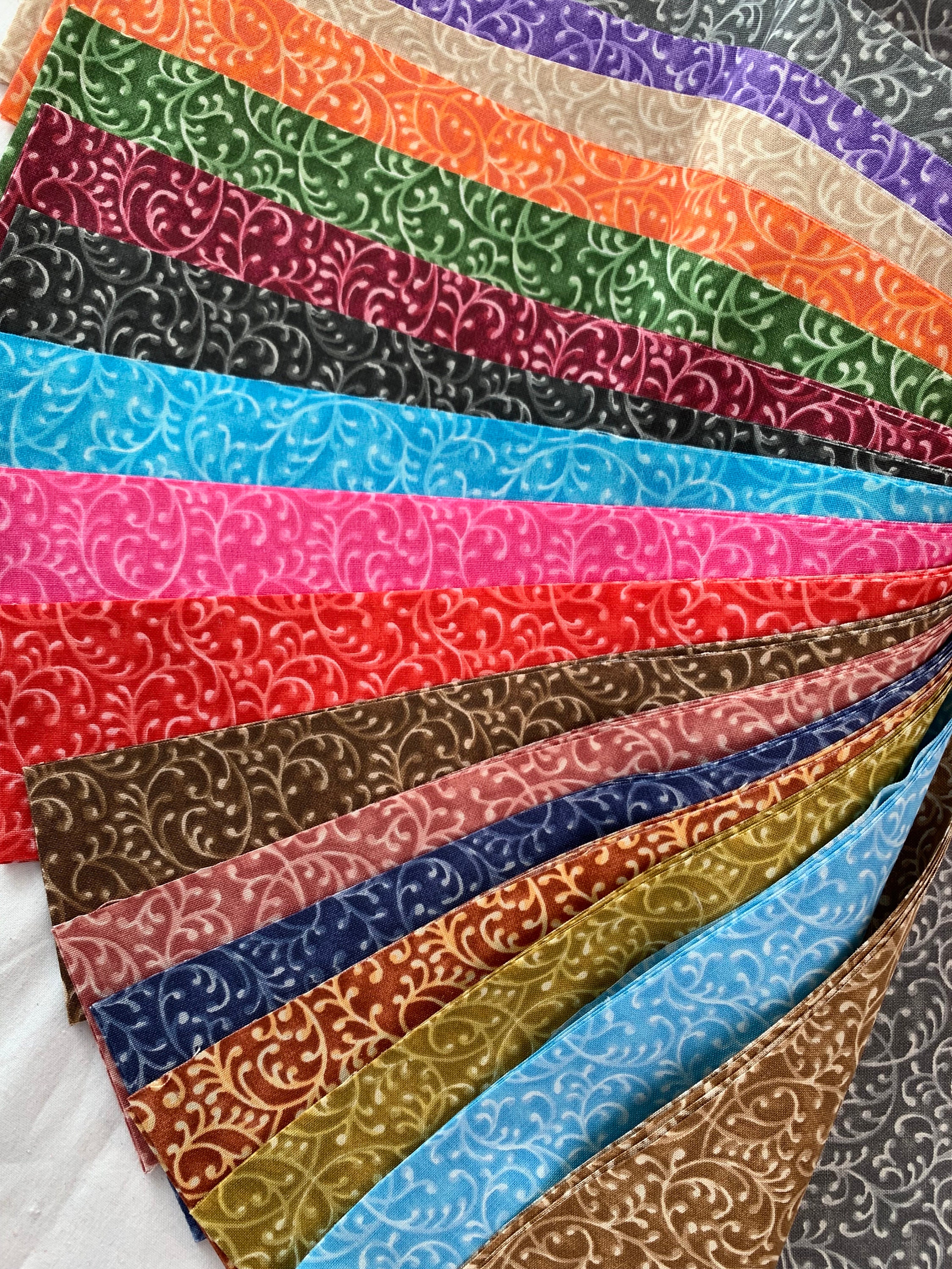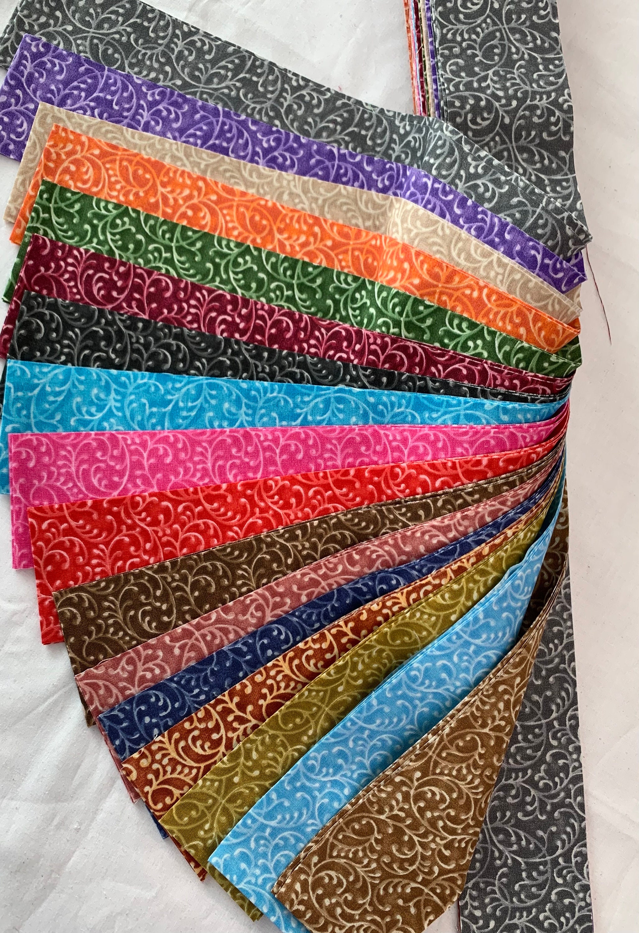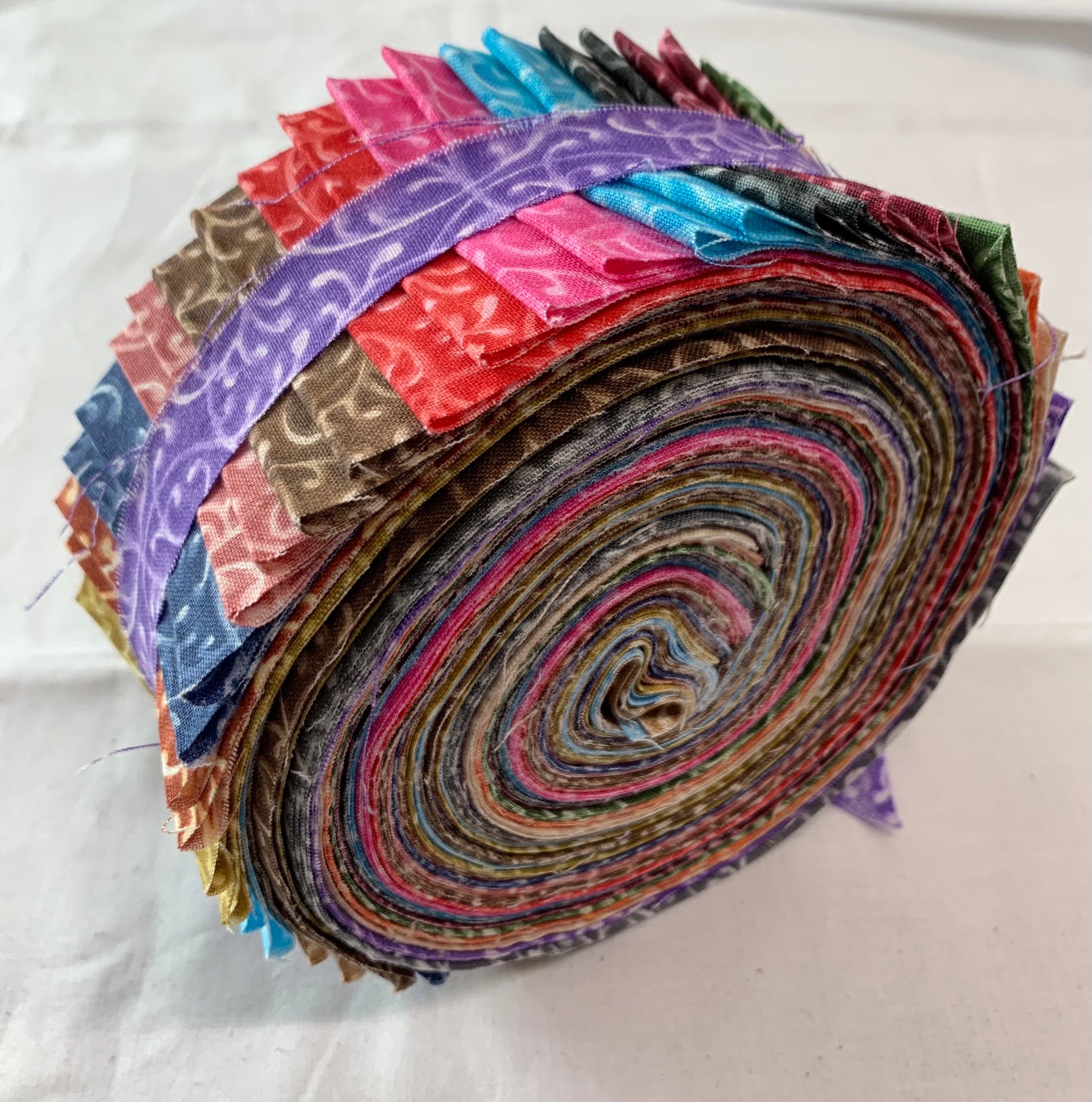 34pc Jelly Roll Filigree print-2.5" strips in 17 colors. 2 of each color. 100% cotton. 2.5" x WOF