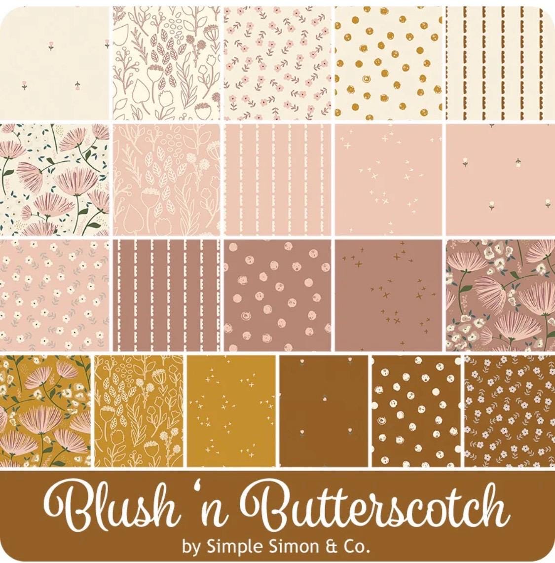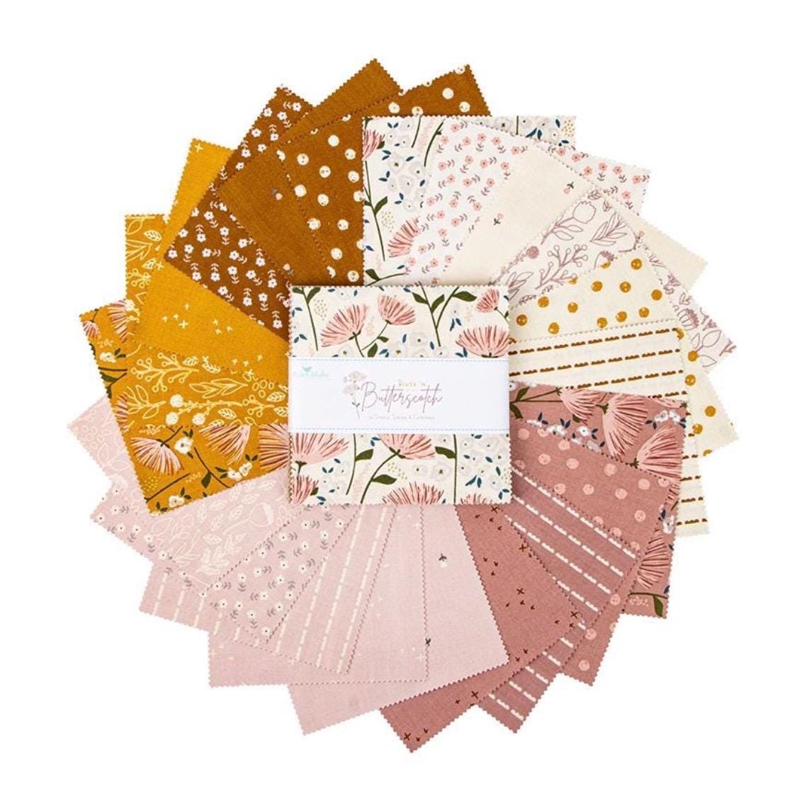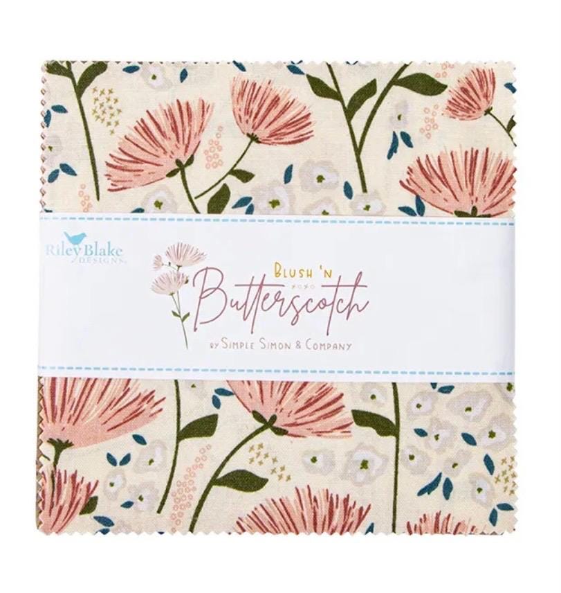 Blush n Butterscotch 5" squares by Simple Simon & Company for Riley Blake. 100% cotton. 42pc charm pack. 5" by 5"