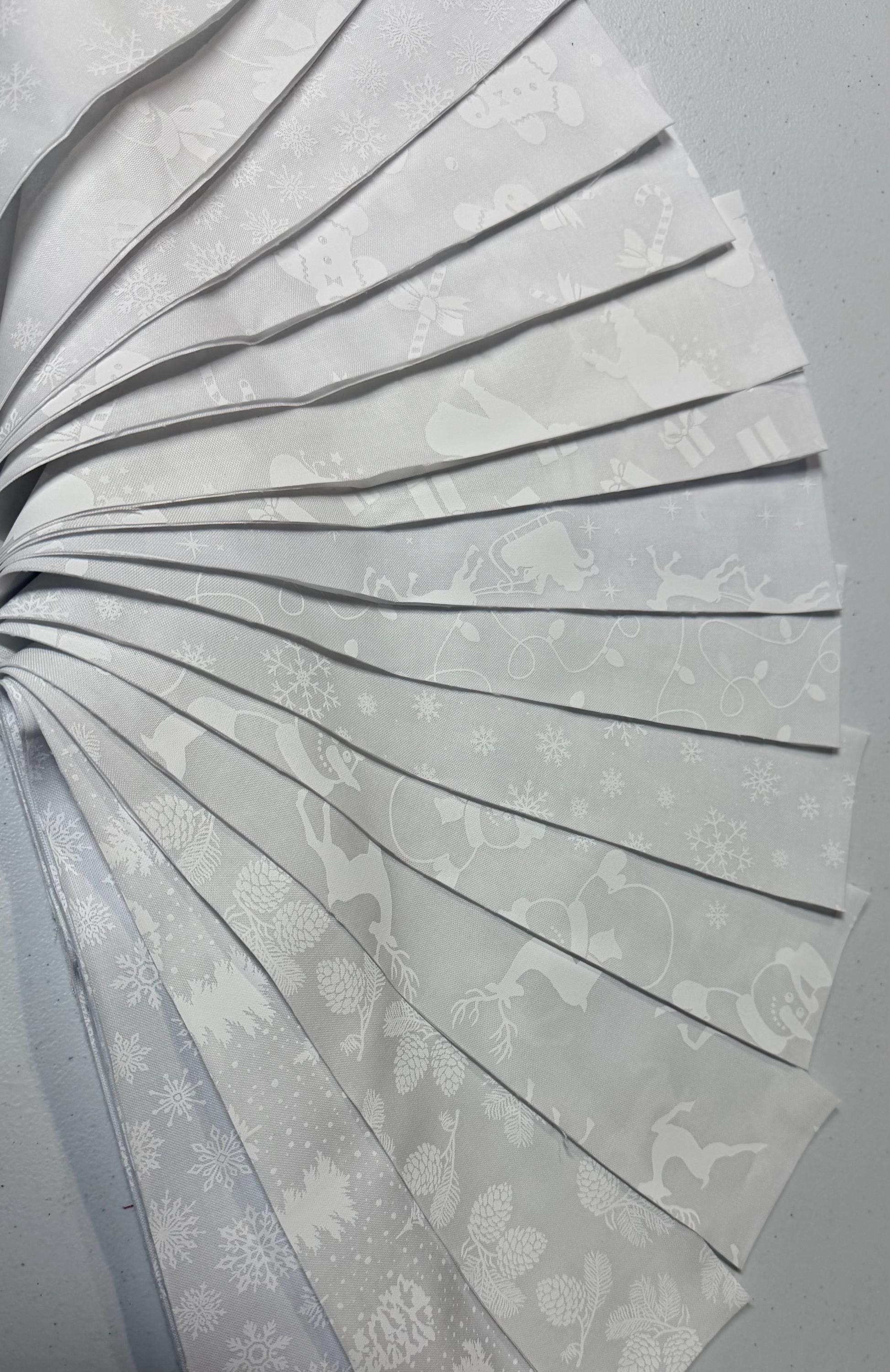 Holiday prints white on white strips set. 100% cotton. All White on white. Wilmington prints fabrics.