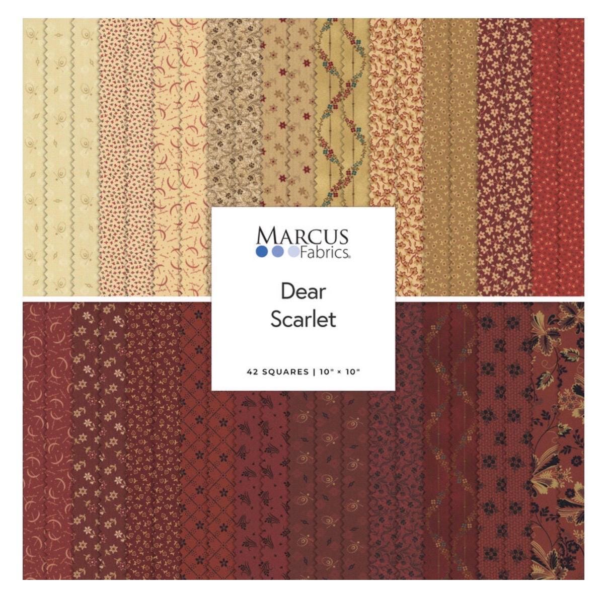 Dear Scarlet fabric is beautiful Reds & Creams Reproduction prints by Marcus fabrics. 100% cotton. 42pc