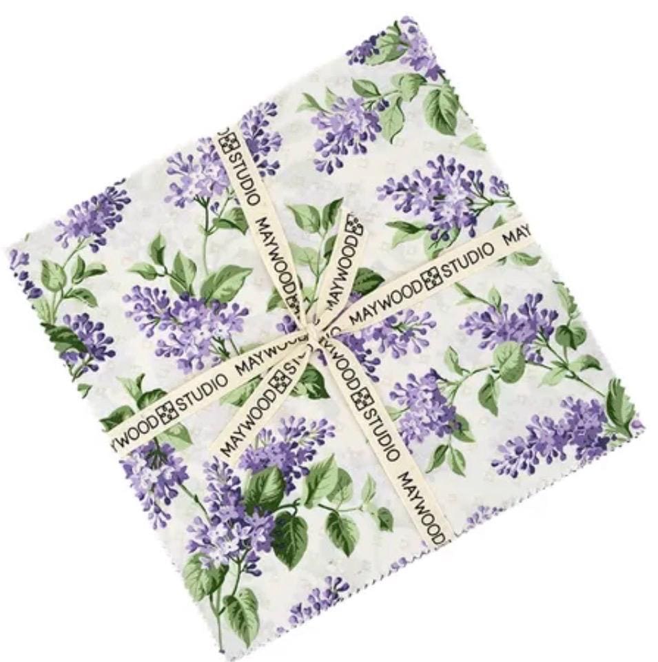 Beautiful fabrics in Purples & Greens by Maywood Studio. 100% cotton. 10" squares. 42pc