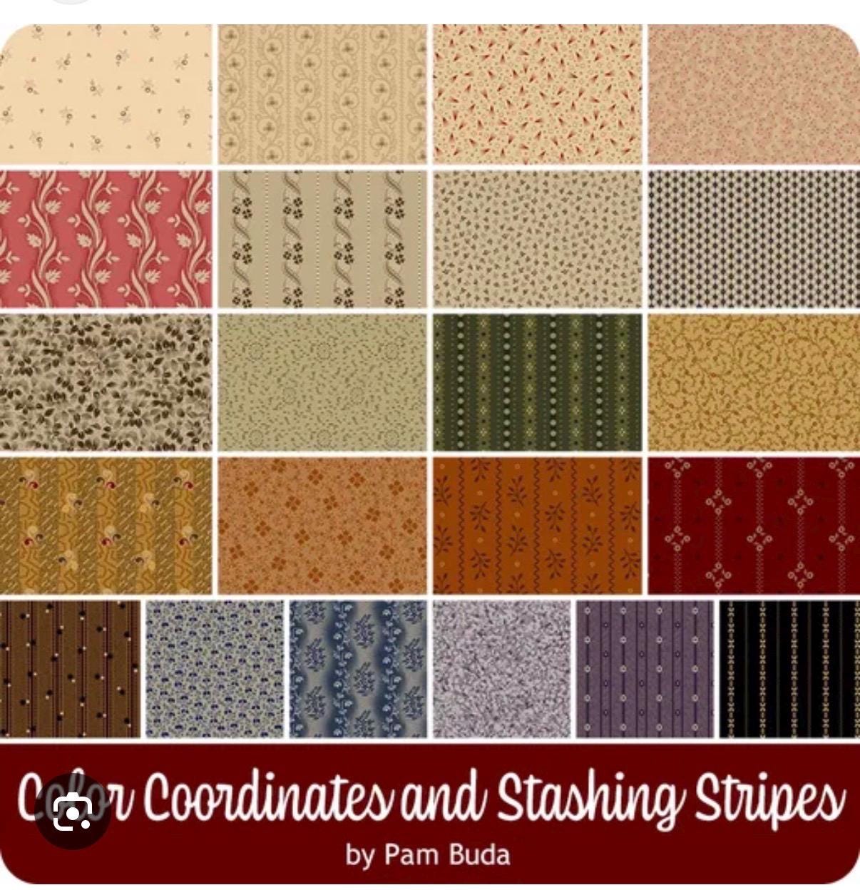 Reproduction prints in Earthy colors by Pam Buda for Marcus fabrics. 100% cotton. 10" squares. 42pc