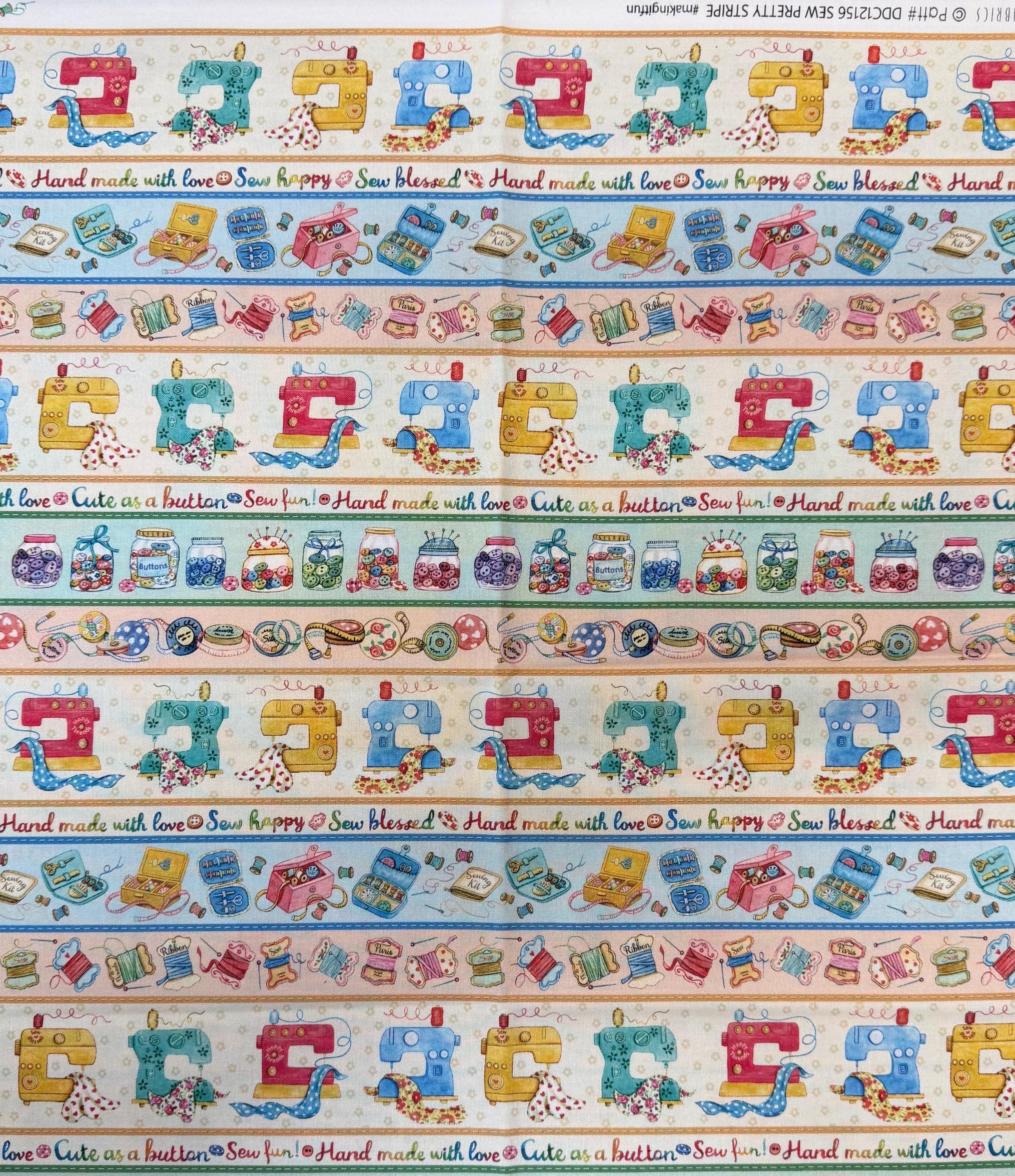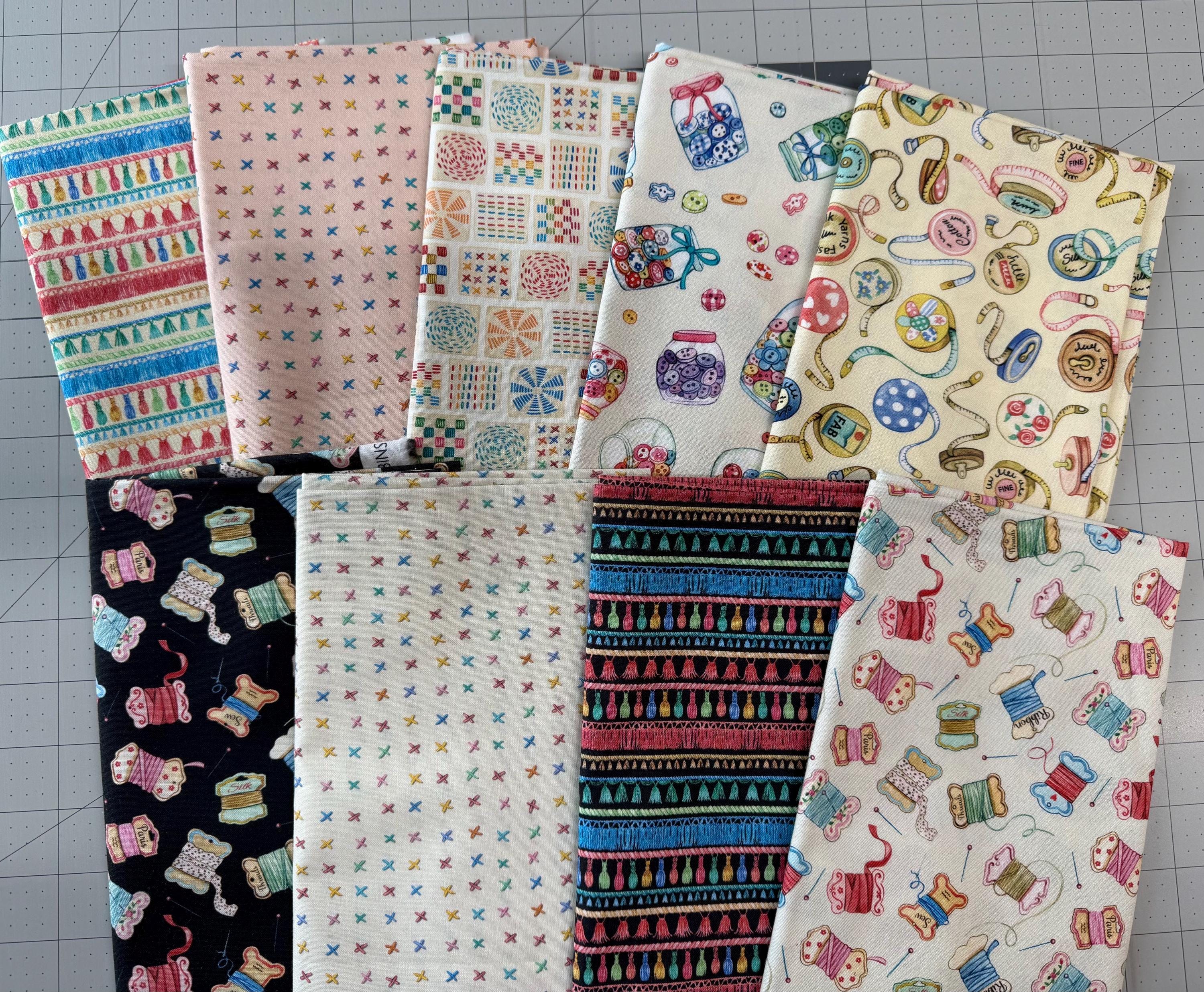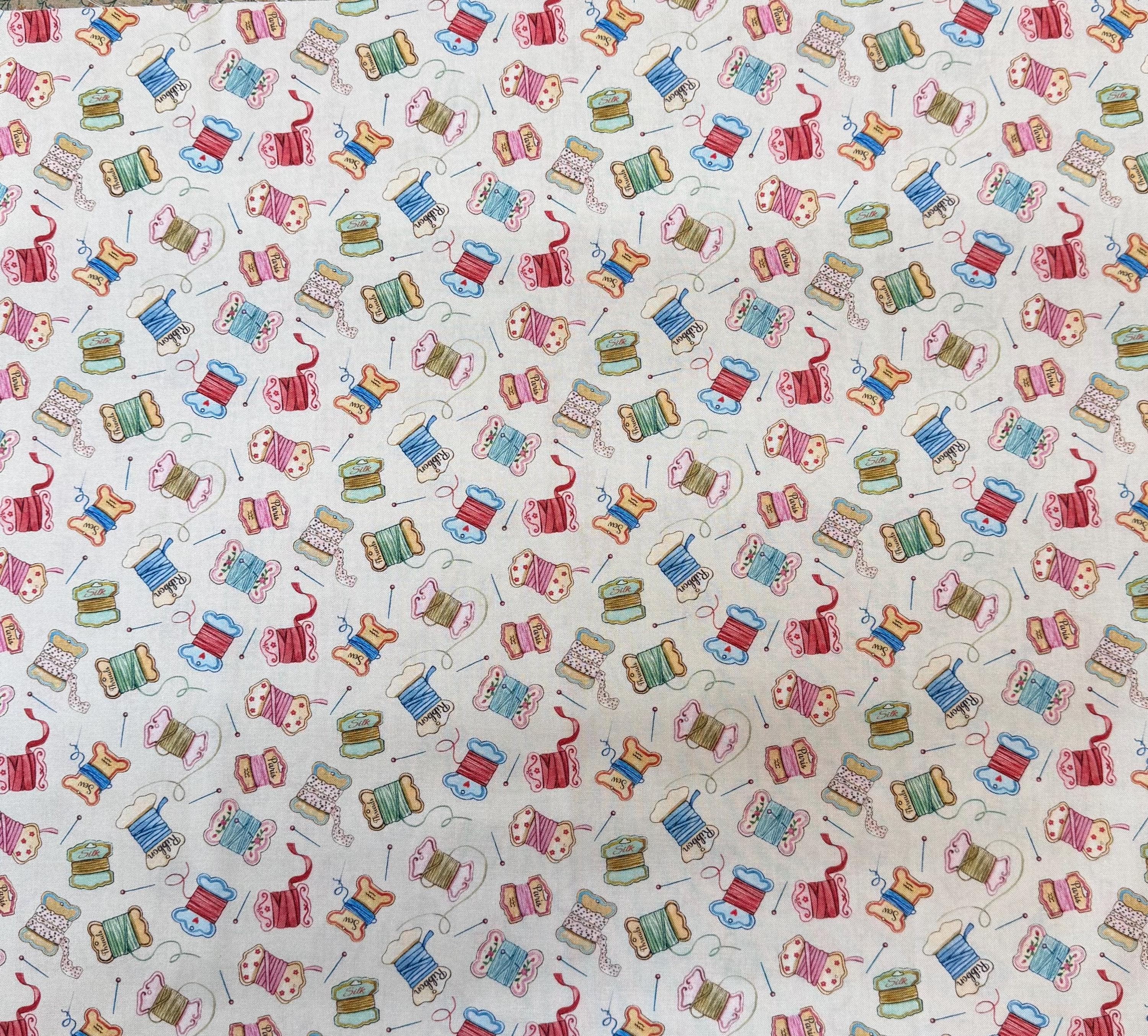 Sew Pretty!! These are the cutest sewing & notion prints!! This is a 1/2 yard bundle with the Pillow Panel. This is the ENTIRE line you are getting! 18 half yard pieces and the Panel! Design by Louise Nisbet for Michael Miller fabrics. 100% cotton. half yards are 18" by 44"--Panel is 24" by 44".